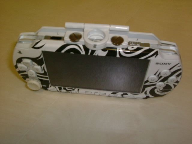 購入しました。 早速、付けてみました。 いいですね~♪ んでもって蓋を前で閉じてみようと思います。。。 現在モンスターハンターポータブル2ndをやっているために「CYBER・アナログスティックキット<アイボリーホワイト>」をのミドルタイプAを使っているのですが当然といえばとうぜんのように「フェイスシールド」の蓋が閉まりません。 がーん。。。 普通のアナログスティックを付けてみました。 きちんと閉じるようです。 全体としては良い出来だと思います。 フェイスシールド自身も少し光沢がありかっこいいです。 価格も1,000円もせず安いので良いと思います。 |